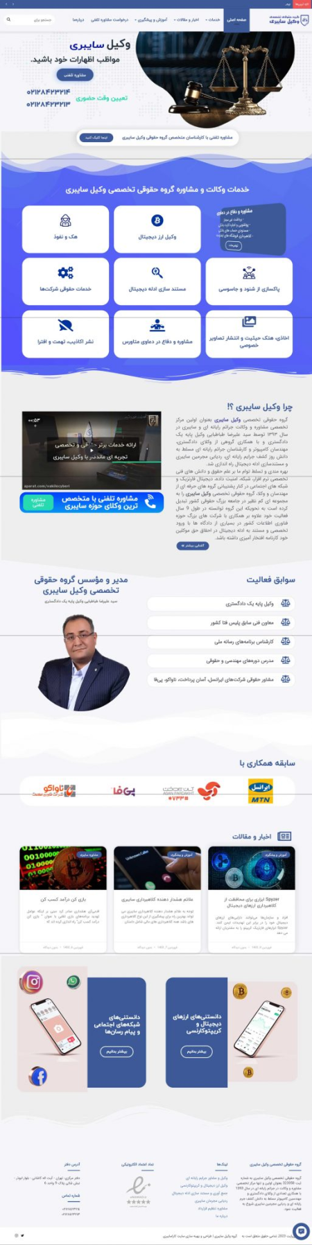 سایت وکیل سایبری با هدف ارائه خدمات حقوقی تخصصی در حوزه جرایم و دعاوی سایبری طراحی و اجرا شده و بستری منظم و حرفهای برای پاسخگویی به نیازهای حقوقی کاربران فراهم میکند. در این وبسایت امکان دریافت مشاوره حقوقی، آشنایی با خدمات تخصصی، پیگیری موضوعات حقوقی و دسترسی به اطلاعات آموزشی مرتبط با جرایم سایبری بهصورت آنلاین در نظر گرفته شده و تمرکز اصلی پروژه بر شفافیت اطلاعات، دسترسی سریع به خدمات حقوقی و تسهیل ارتباط میان کاربران و تیم حقوقی بوده است.