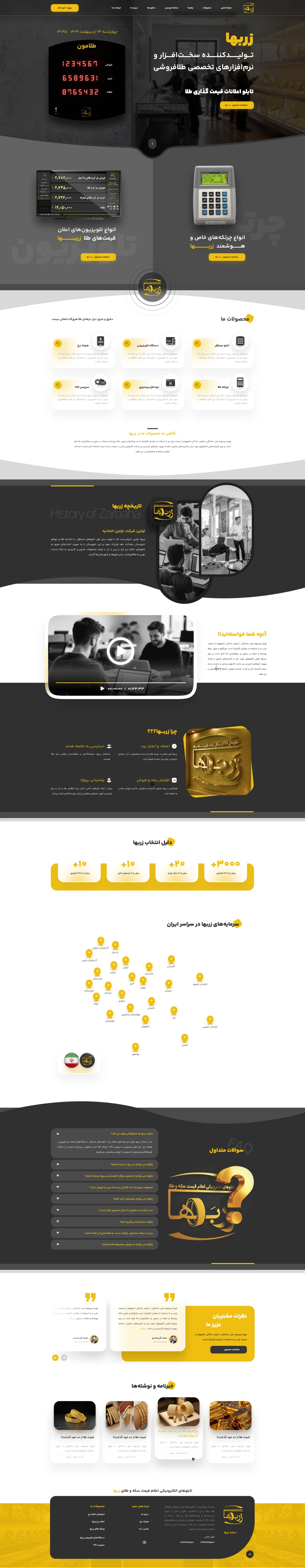 در این وب‌سایت بخش‌هایی مانند معرفی محصولات و ملزومات طلافروشی، نمایش قیمت‌های به‌روز، محتوای اطلاع‌رسانی و بخش ارتباط با کاربران به‌صورت هدفمند طراحی و پیاده‌سازی شده است.همچنین طراحی ریسپانسیو سایت موجب شده وب‌سایت زربها در موبایل و دسکتاپ عملکردی یکسان و بهینه داشته باشد و تجربه کاربری مطلوبی را برای تمامی کاربران ایجاد کند.